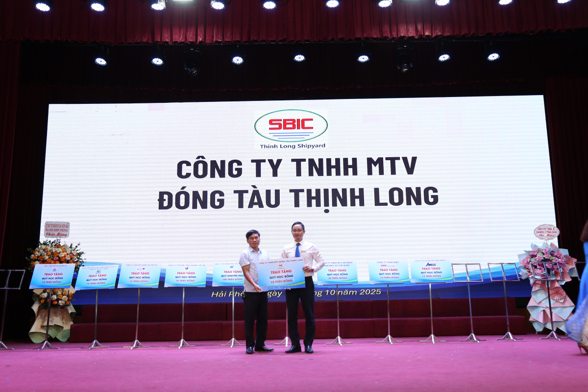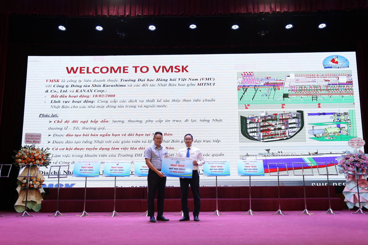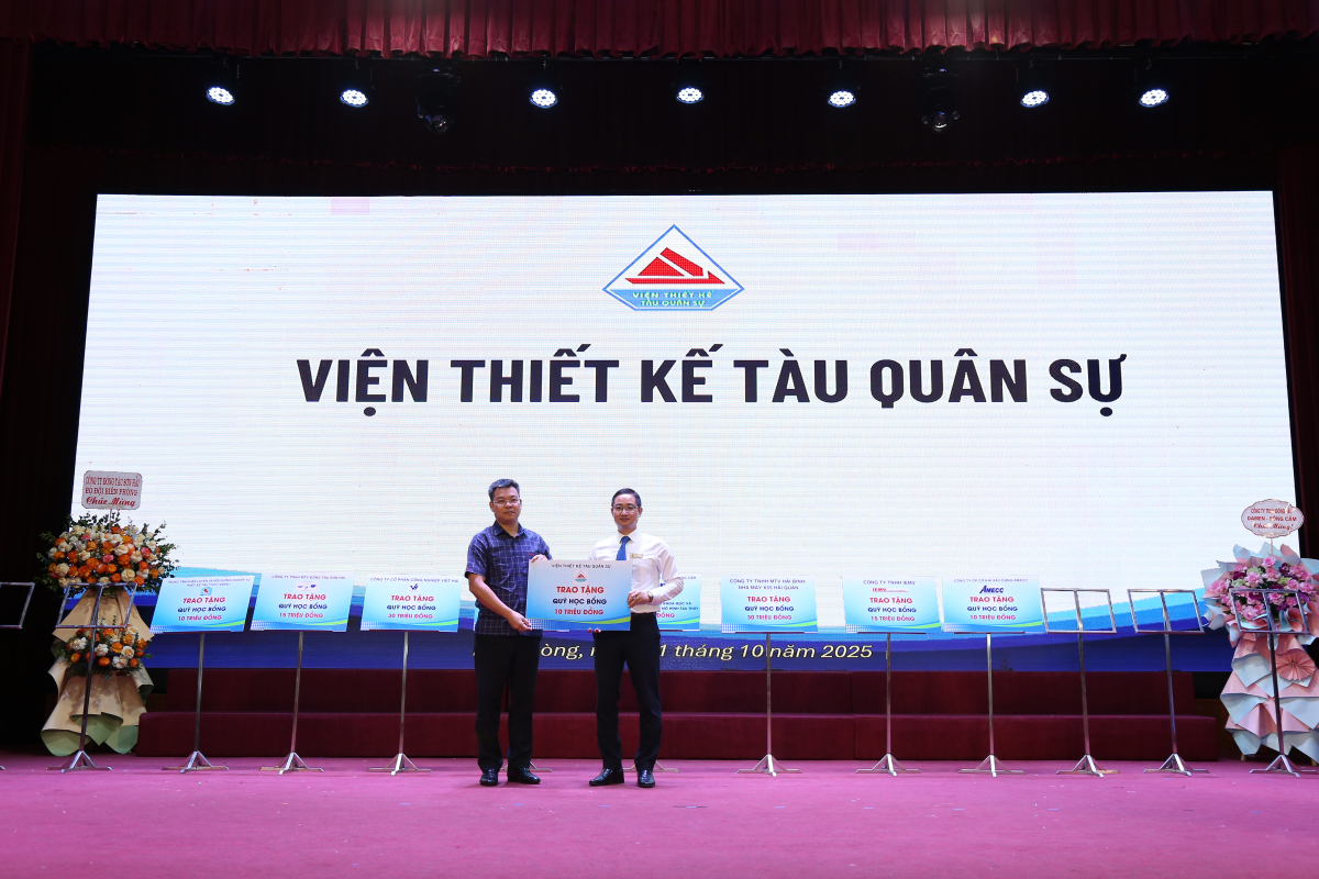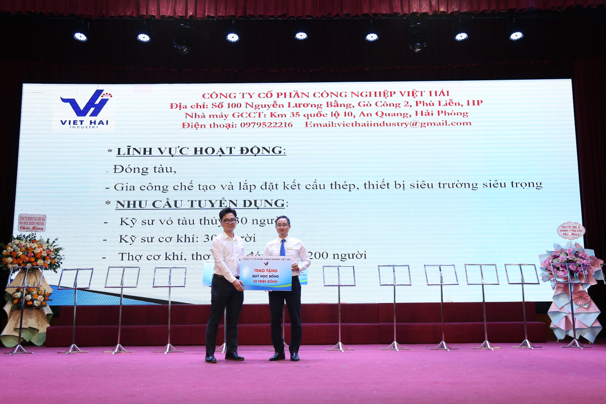 Sau phần đối thoại, chương trình tiếp tục với Lễ trao tặng học bổng từ các doanh nghiệp dành cho sinh viên có thành tích học tập và rèn luyện tốt. Hoạt động này thể hiện sự quan tâm, ủng hộ và gắn kết giữa các doanh nghiệp đối tác với công tác đào tạo, bồi dưỡng sinh viên của Khoa Đóng tàu.