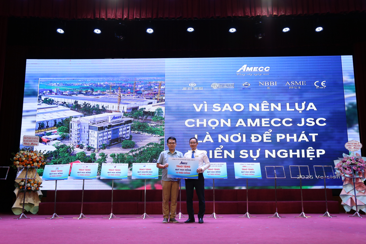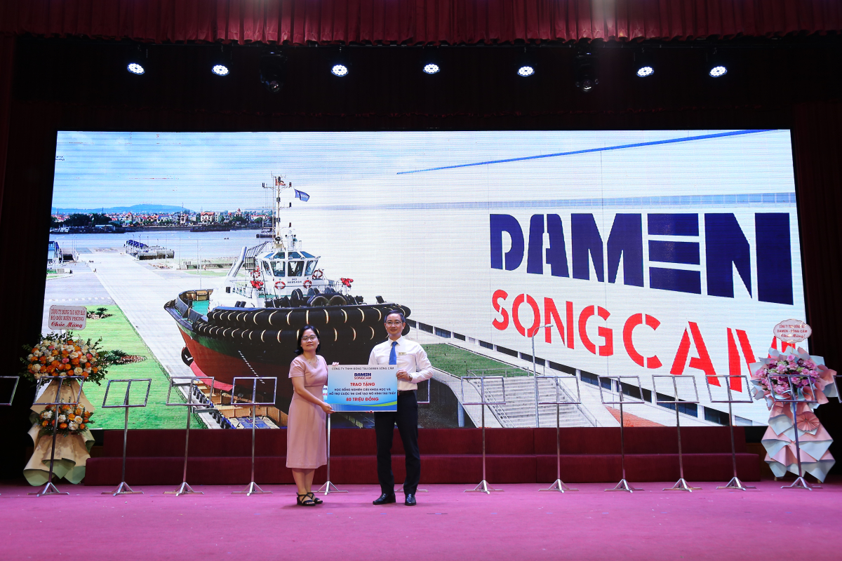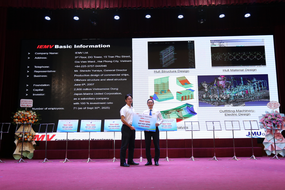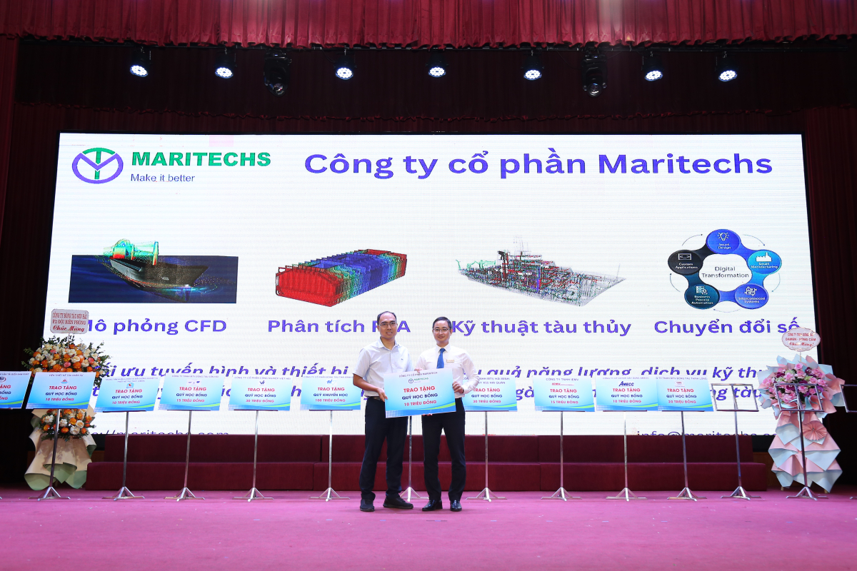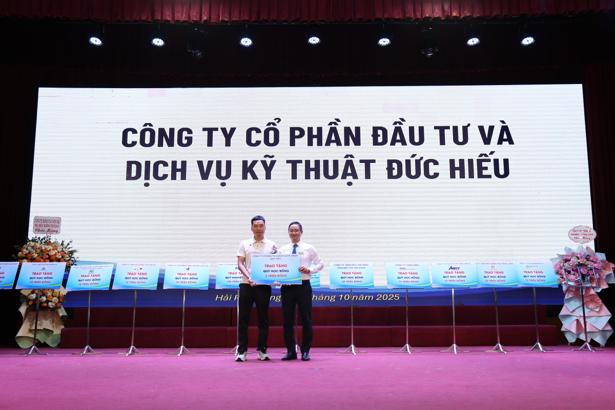 Sau phần đối thoại, chương trình tiếp tục với Lễ trao tặng học bổng từ các doanh nghiệp dành cho sinh viên có thành tích học tập và rèn luyện tốt. Hoạt động này thể hiện sự quan tâm, ủng hộ và gắn kết giữa các doanh nghiệp đối tác với công tác đào tạo, bồi dưỡng sinh viên của Khoa Đóng tàu.