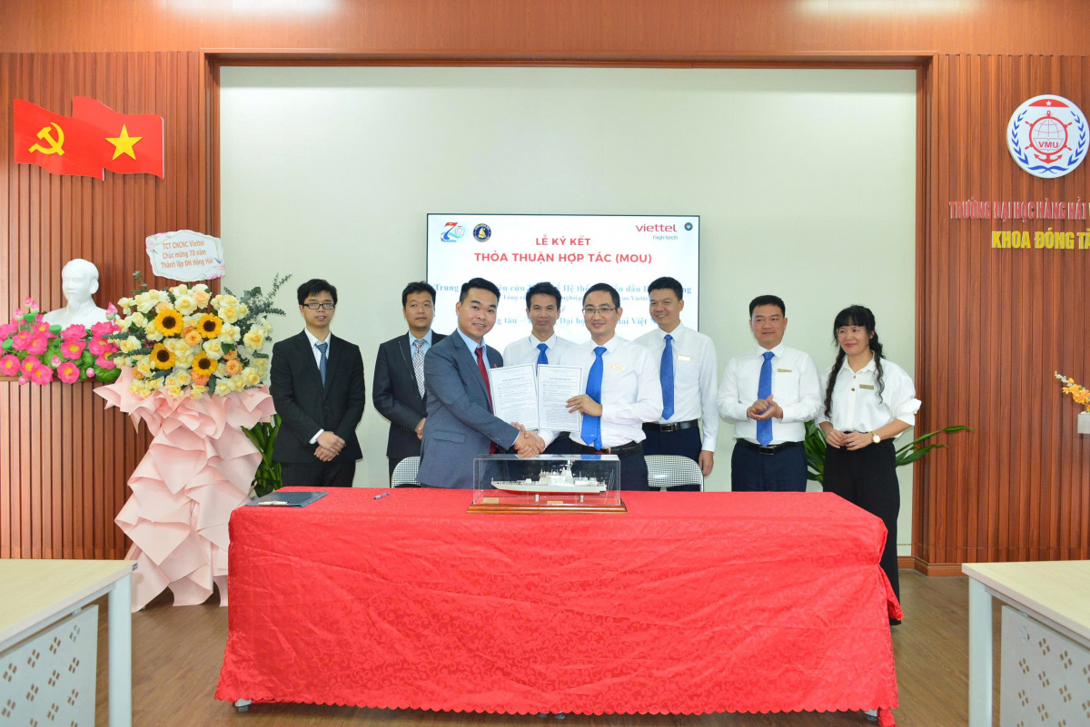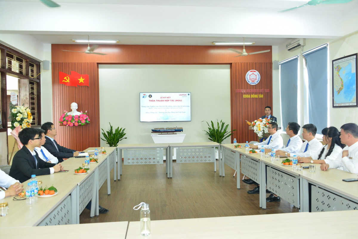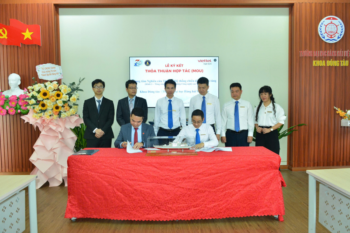 Chiều ngày 24 tháng 03 năm 2026, tại Phòng 606 nhà A6, Trường ĐHHH Việt Nam đã diễn ra Lễ ký Biên bản ghi nhớ hợp tác giữa Khoa Đóng tàu và Trung tâm Nghiên cứu Thiết kế hệ thống chiến đấu đa nền tảng – Khối 1 – Tổng Công ty Công nghiệp Công nghệ cao Viettel. Tham dự lễ ký kết, về phía Trung tâm Nghiên cứu Thiết kế hệ thống chiến đấu đa nền tảng có Ông Lê Trung Đức – Phó Giám đốc Trung tâm, ông Cao Xuân Cảnh và ông Hoàng Minh Đức – thành viên của Trung tâm. Về phía trường Đại học Hàng hải Việt Nam có PGS.TS. Phạm Tâm Thành – Phó phòng Khoa học Công nghệ, về phía Khoa Đóng tàu có PGS.TS. Trần Ngọc Tú – Trưởng Khoa Đóng tàu cùng các Trưởng bộ môn và cán bộ giảng viên.