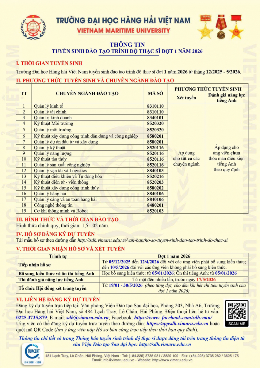 Thông báo Tuyển sinh đào tạo trình độ thạc sỹ đợt 1 năm 2026(03/12/2025)