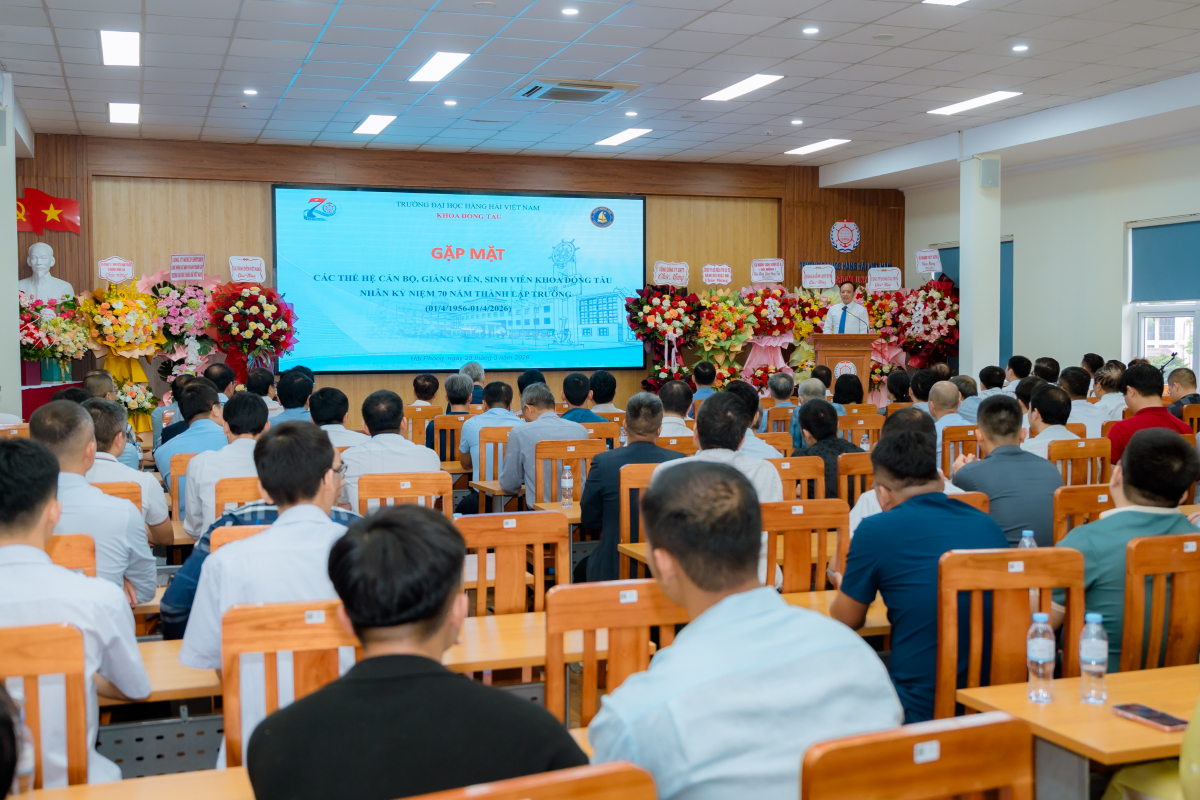 Chiều ngày 28/03/2026, trong không khí trang trọng và đầm ấm hướng tới kỷ niệm 70 năm thành lập Trường Đại học Hàng hải Việt Nam, Khoa Đóng tàu đã tổ chức buổi gặp mặt thân mật các thế hệ cán bộ, giảng viên và sinh viên của Khoa tại phòng họp 3.3 – nhà A1.