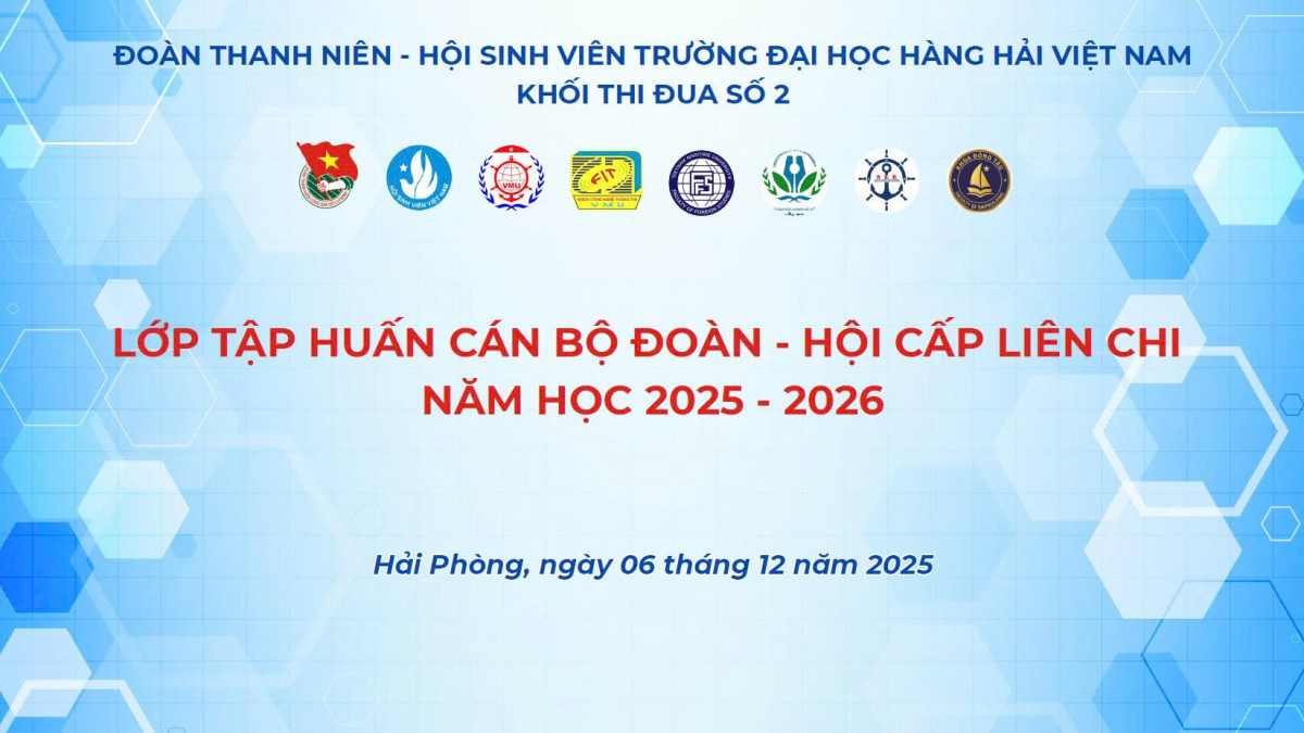 Sáng thứ bảy (06/12/2025), Khối thi đua số 2 đã tổ chức thành công Lớp tập huấn Cán bộ Đoàn - Hội cấp Liên chi, với sự tham gia của hơn 120 đồng chí cán bộ Đoàn - Hội đến từ các đơn vị: Khoa Công nghệ thông tin, Khoa Ngoại ngữ, Viện Môi trường, Khoa Đóng tàu và Viện Đào tạo Chất lượng cao.