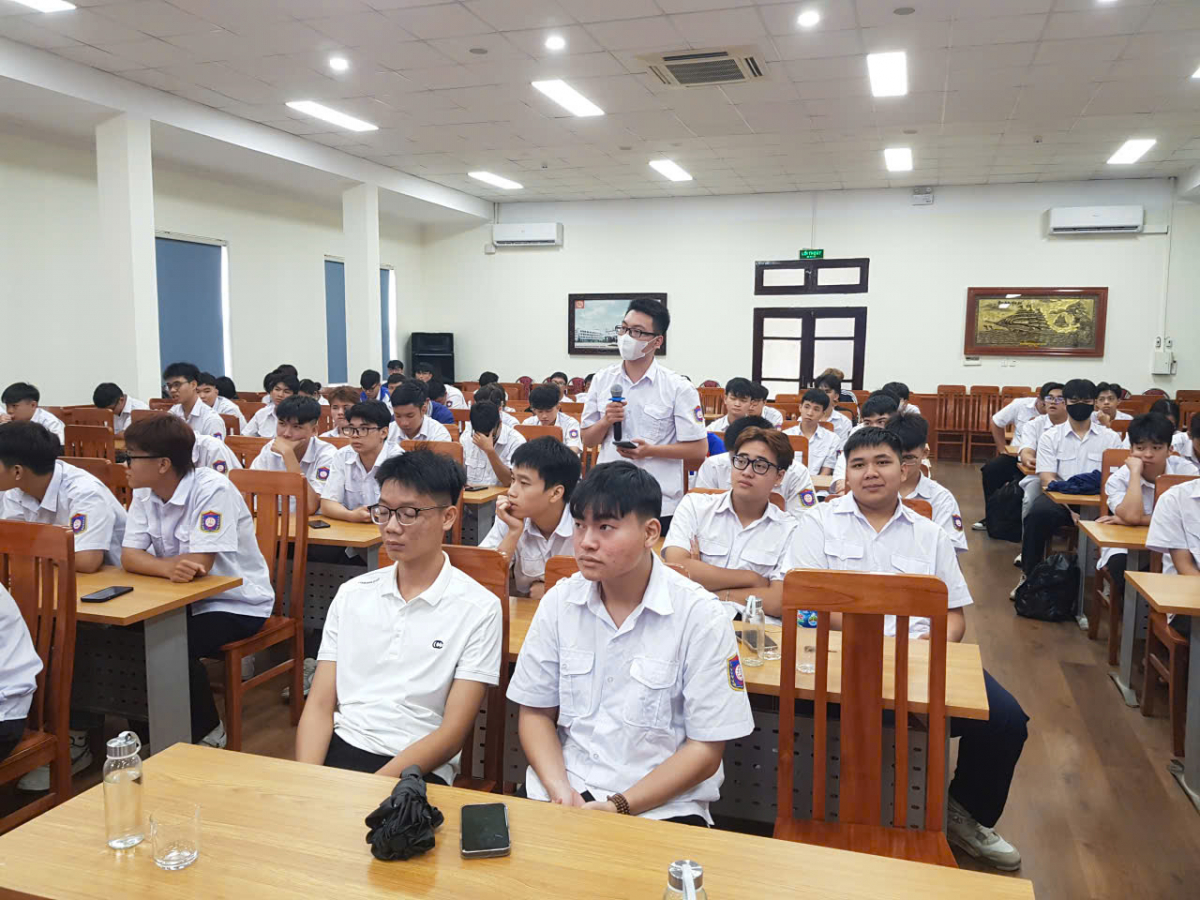 Không khí buổi trao đổi trở nên sôi nổi trong phần hỏi đáp và thảo luận mở. Nhiều sinh viên mạnh dạn đặt câu hỏi về cơ hội việc làm, yêu cầu tuyển dụng, kỹ năng mềm và định hướng phát triển nghề nghiệp trong lĩnh vực đóng tàu. Ông Vũ Hồng Thành đã tận tình giải đáp, đồng thời đưa ra những lời khuyên thiết thực về việc rèn luyện kỹ năng chuyên môn, sử dụng thành thạo phần mềm kỹ thuật và nâng cao năng lực ngoại ngữ – những yếu tố quan trọng giúp sinh viên tự tin hội nhập và đáp ứng nhu cầu ngày càng cao của thị trường lao động ngành Đóng tàu.