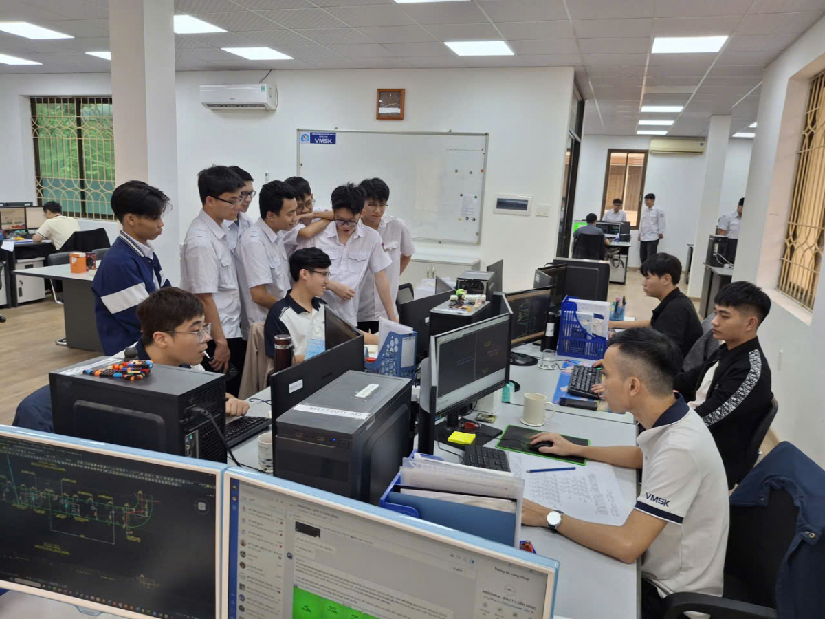 Trong chuyến tham quan, sinh viên được đại diện Công ty VMSK giới thiệu tổng quan về quá trình hình thành và các nghiệp vụ chính trong lĩnh vực thiết kế tàu thủy. Bên cạnh đó, sinh viên còn được tìm hiểu về quy trình thiết kế tàu, các tiêu chuẩn kỹ thuật, phần mềm chuyên ngành cũng như yêu cầu thực tế đối với kỹ sư thiết kế trong môi trường làm việc hiện nay.