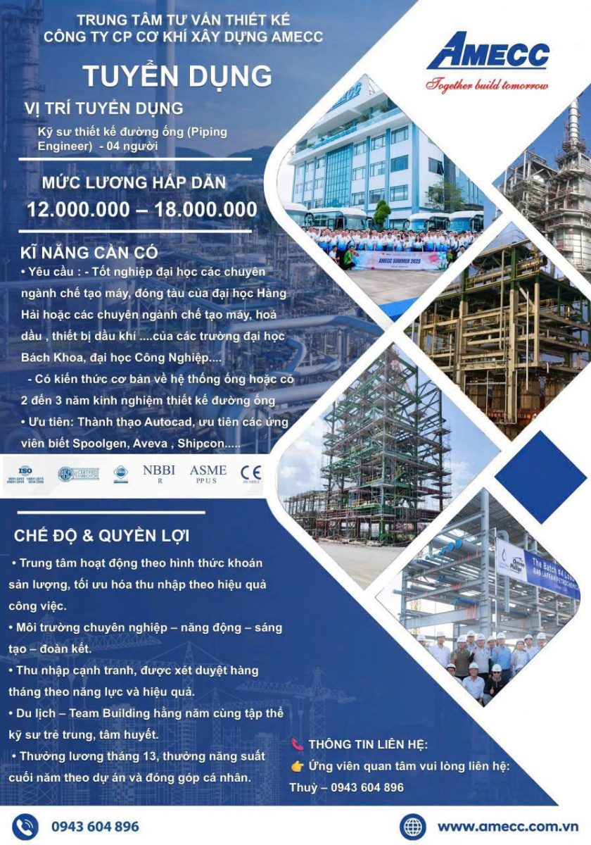 Thông báo tuyển dụng từ trung tâm tư vấn thiết kế Công ty CP cơ khí xây dựng AMECC(16/1/2026)