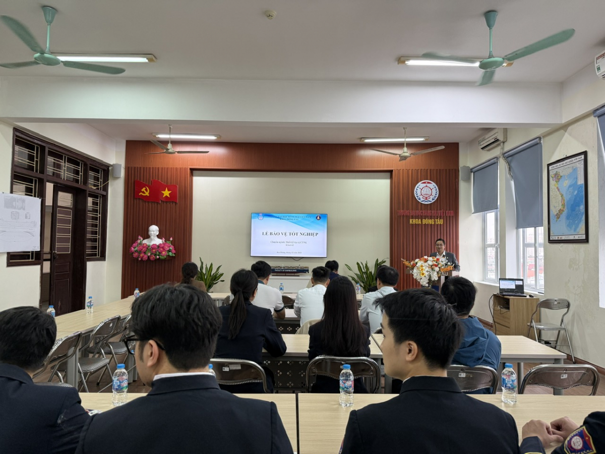Sáng ngày 11/12/2025, Khoa Đóng tàu đã long trọng tổ chức Lễ bảo vệ Đồ án tốt nghiệp Kỹ sư ngành Thiết kế tàu và công trình ngoài khơi và Đóng tàu và công trình ngoài khơi cho các sinh viên Khóa 62. Tại buổi bảo vệ, các sinh viên trình bày và bảo vệ kết quả thực hiện Đồ án của mình trước Hội đồng đánh giá chuyên môn của Khoa.