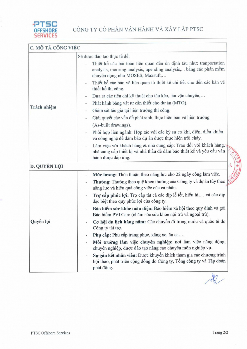 Thông báo tuyển dụng từ Công ty cổ phần vận hành và xây lắp PTSC(12/01/2026)