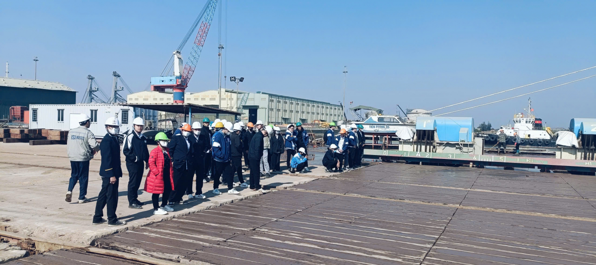 Trong chuyến đi thực tế, giảng viên và sinh viên đã được thăm quan khu vực nhà xưởng, các hạng mục thi công, khu vực hạ thủy tàu …; trực tiếp quan sát quy mô cơ sở vật chất, trang thiết bị và năng lực sửa chữa, hoán cải tàu của Công ty.